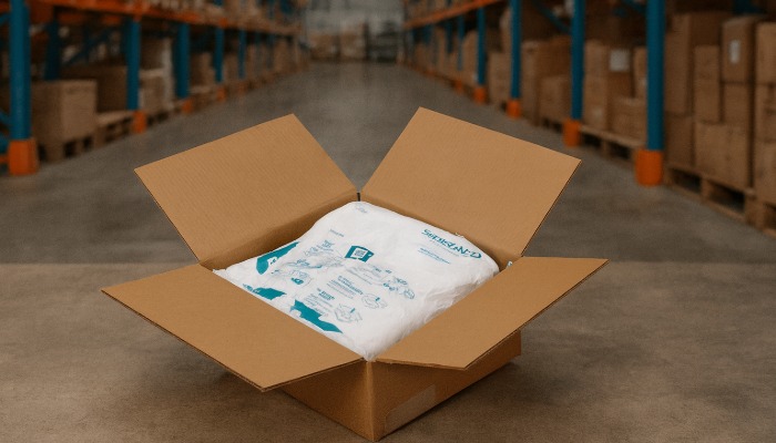 Die Instapak Quick Schaumstoffbeutel werden plano geliefert, was erheblichen Lagerplatz spart. Der Gebrauch ist einfach und benötigt keine speziellen Maschinen: